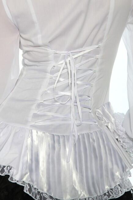 Wählen Sie zum Beispiel ein weißes Piratenkleid, einen Piraten-Volantrock, einen Piraten-Samt-Bolero und einen Piratenhut.