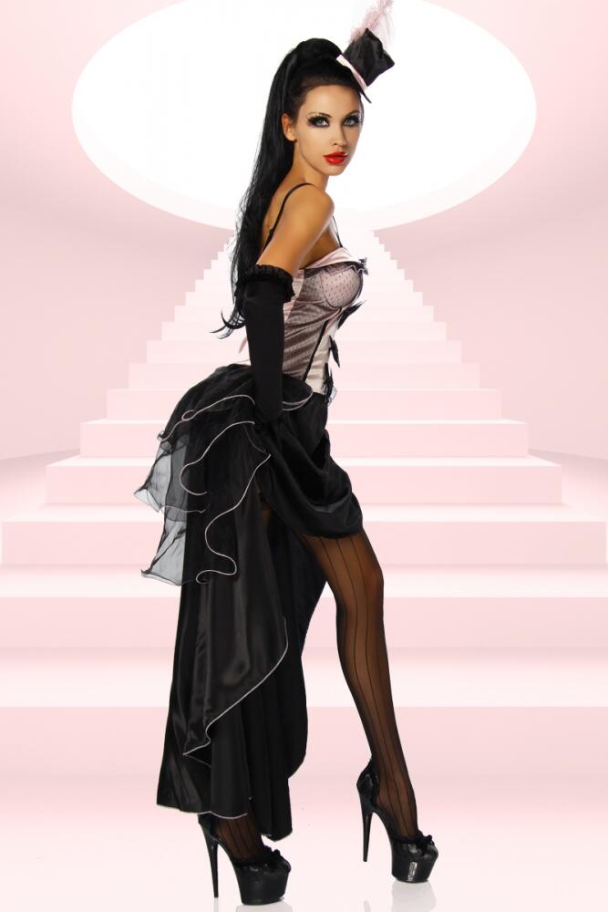 Das aufwendig und sehr gut verarbeitete Stück besitzt am Rücken eine Schnürung mit Schutzlasche und seitlich einen Reißverschluss zum bequemen Ankleiden.