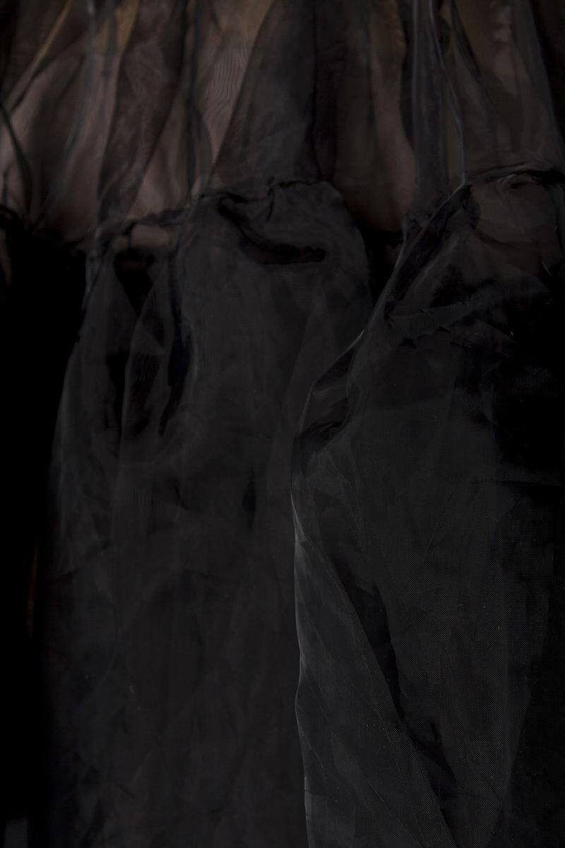 Der transparente Netzoberstoff des Kleides ist allover floral bestickt.