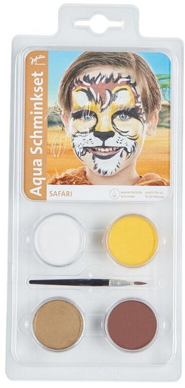 Es sind vier Farbtöpfchen in den Farben Gelb, Weiß, Silber und Braun mit jeweils 6g Schminke enthalten.