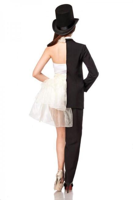 Sie finden hinten eine unterlegte Zierschnürung, mit der Sie die Weite des Kleides regulieren können.