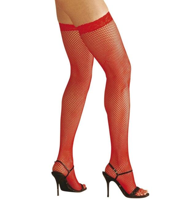 Halterlose Damen Netzstrümpfe mit Silikon-Spitzenabschluss.