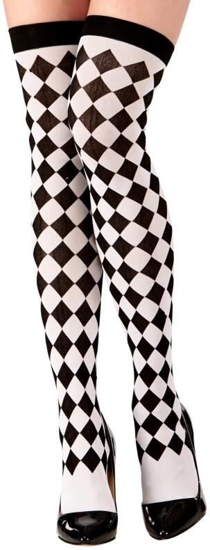 Karneval Damen Strümpfe Overknee Harlekin schwarz weiß: