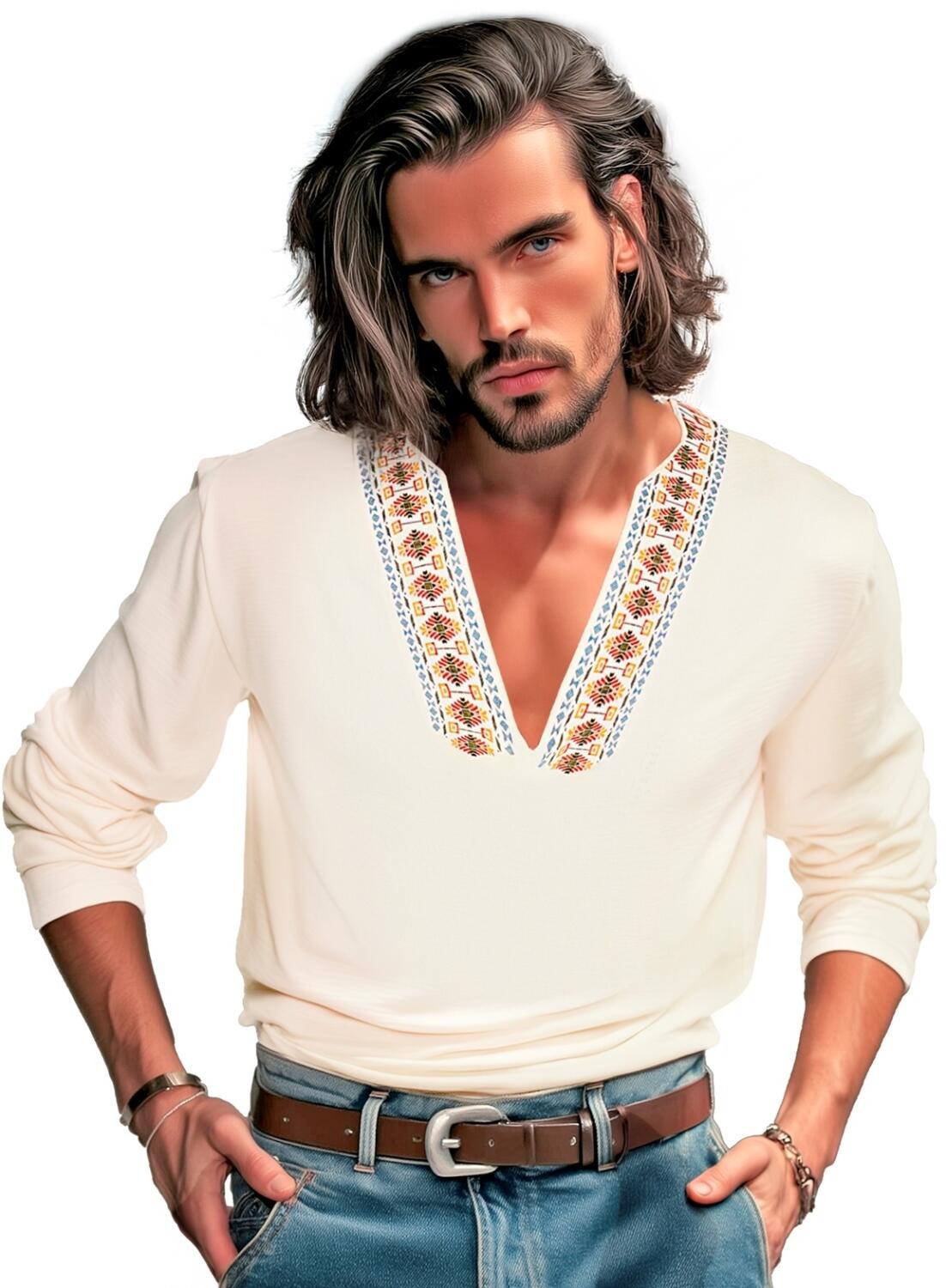 Schöne Tunika mit Folklore-Druck für die Motto-Party.