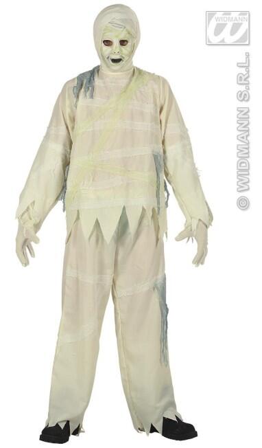 Das Gruselkostüm besteht aus einer Tunika, einem Gürtel und einer Maske mit Kapuze.