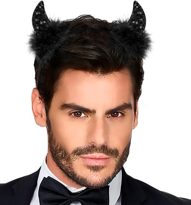 Karneval Halloween Kopfschmuck Demon Hörner mit Schleier: