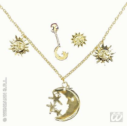 Eine goldfarbene Fledermauskette und zwei Spinnennetzohrclips zieren jede Hexe.