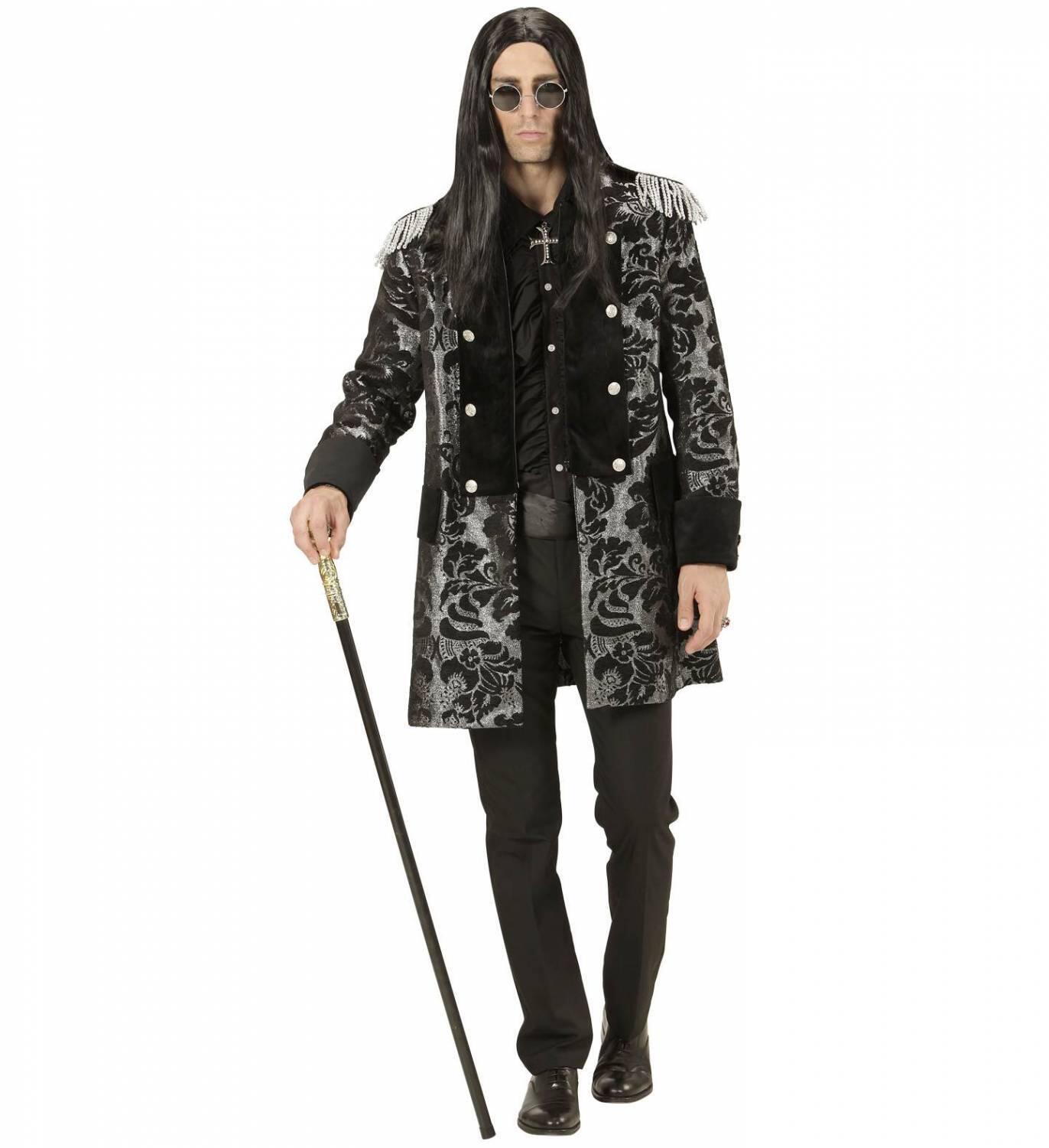 Karneval Herren Kostüm Frack Jackett Brokat schwarz silber: