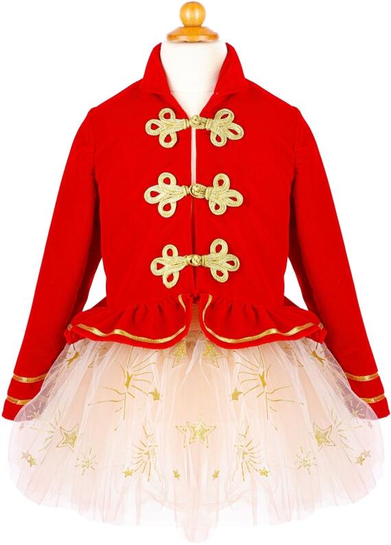 Der Überrock ist mit glitzernden Sternen dekoriert.