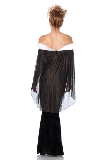 Das Damenkostüm besteht aus einem Samtbody, einem Hut, und einem body harness.