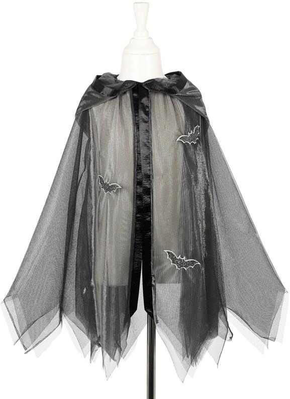 Leicht transparentes Hexencape mit Kapuze aus gedoppeltem Stoff.