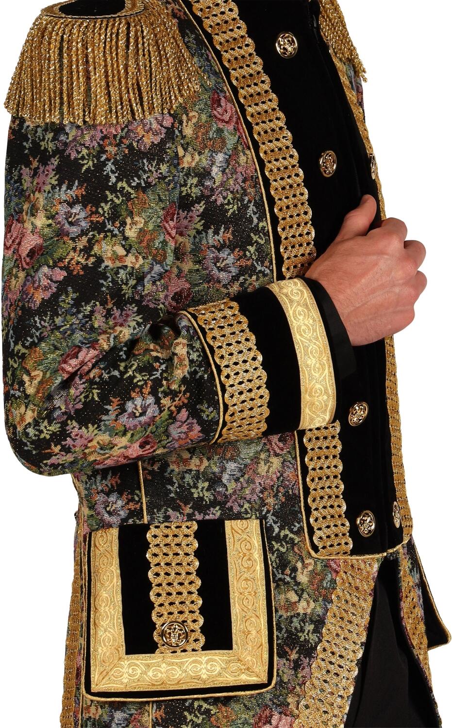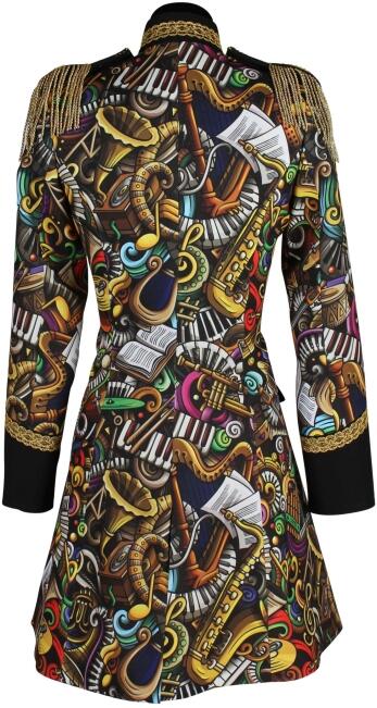 Goldene Borten und Schmuckknöpfe zieren zusätzlich Taschen, Manschetten und Einsätze.