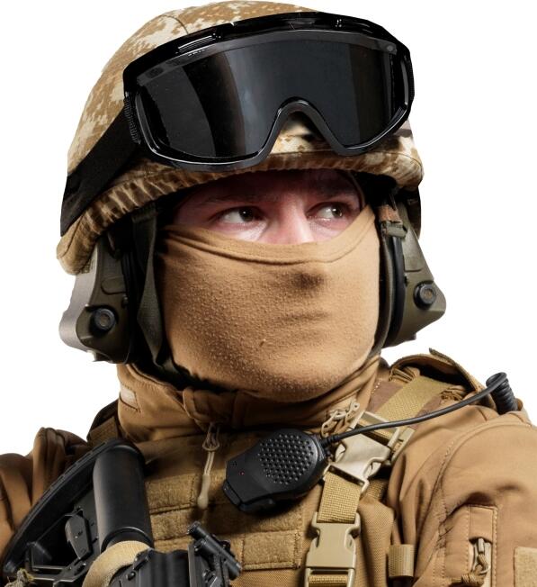 Das Model trägt zusätzlich eine Waffe und eine Sturmhaube.